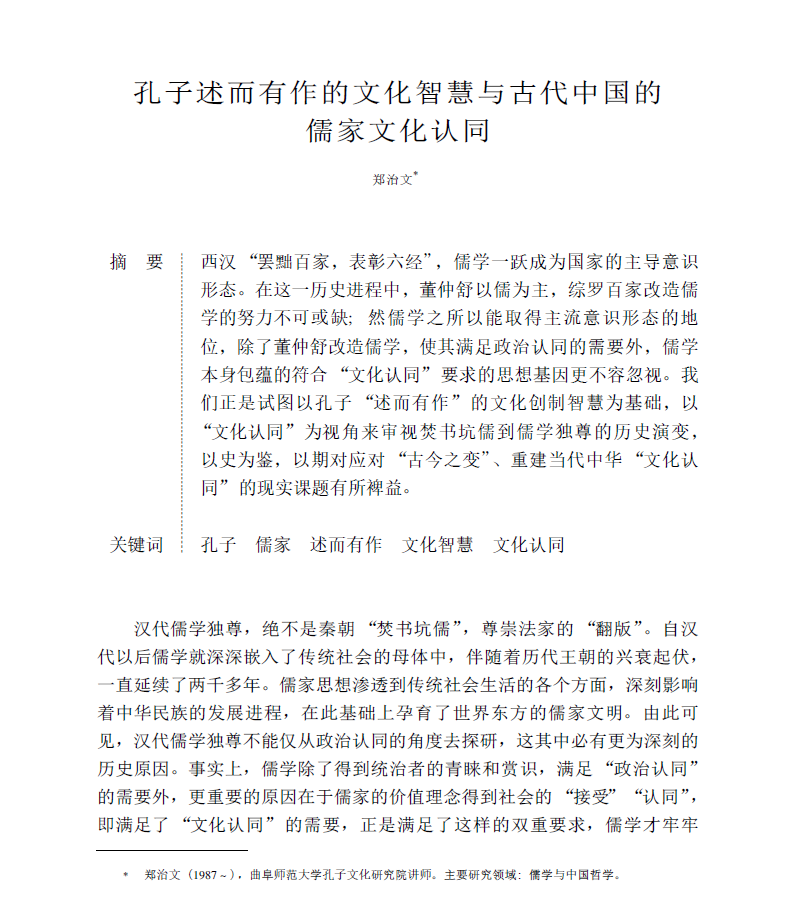 郑治文:孔子述而有作的文化智慧与古代中国的儒家文化认同