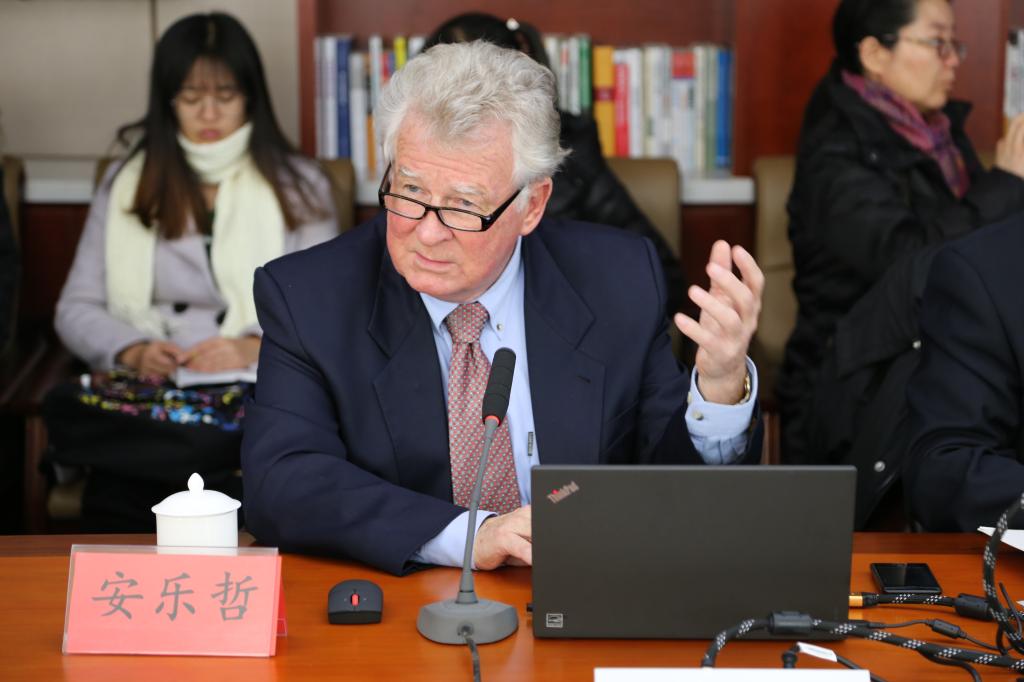1月22日,美国夏威夷大学哲学系教授、北京大学哲学系客座教授安乐哲教授,北京外国语大学东西方关系中心主任、国际中国文化研究院文教专家、国际儒学联合会理事田辰山教授应邀来我校,在大数据研究院二楼会议室作了题为《儒家智慧的世界意义》的报告。