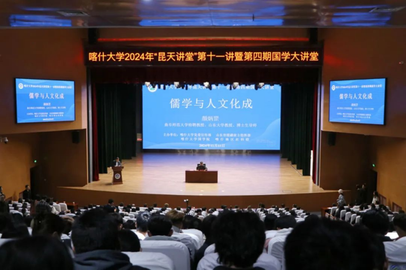 此次报告会由喀什大学党委宣传部、山东省援疆指挥部、喀什大学国学院、喀什地区社科联共同主办。颜炳罡教授学术团队成员陆信礼、刘庆涛、常樯,喀什大学师生及喀什地区社科联工作人员等五百余人现场聆听报告。