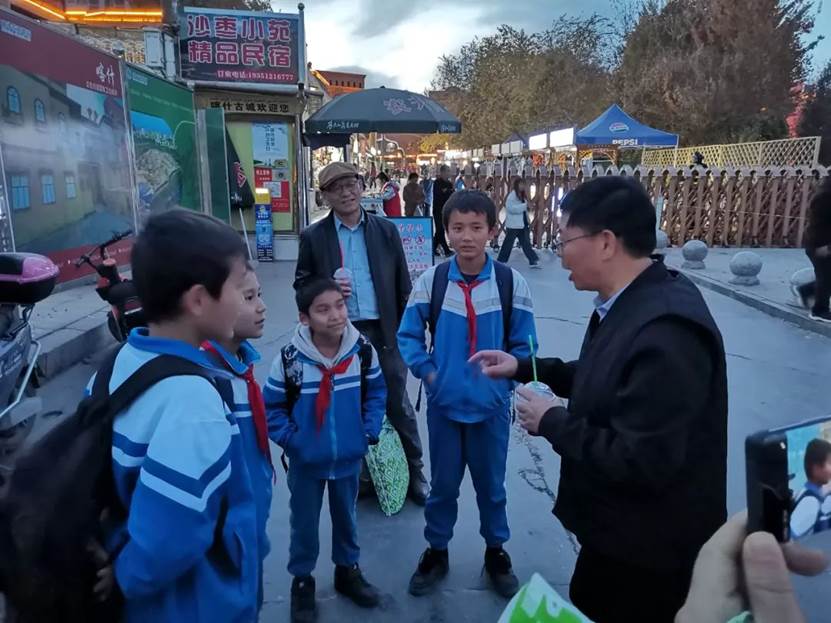 在喀什交流考察期间,颜炳罡教授携学术团队成员还深入基层,了解以儒学为核心的中华优秀传统文化在当地的普及情况,向维族儿童讲解孔子其人其事,并带领维族儿童共读蒙学经典。