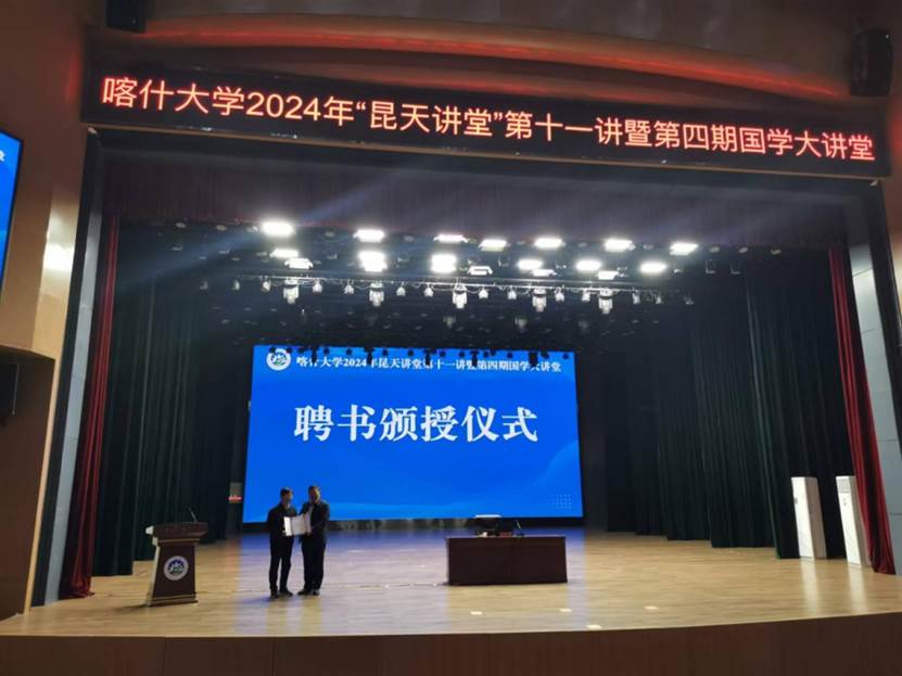 11月11日下午,喀什大学2024年“昆天讲堂”第十一讲暨第四期国学大讲堂举行。颜炳罡教授应邀为喀什大学师生作题为《儒学与人文化成》的学术报告。报告开始前,喀什大学党委常委、宣传部部长丛培兵向颜炳罡教授颁发喀什大学客座教授聘书。