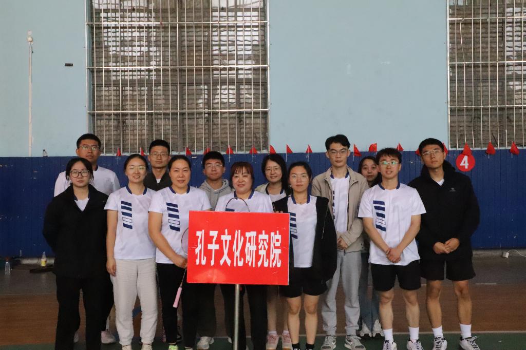 为丰富校园文化生活,增强凝聚力量,展现曲园学子的良好精神风貌,2023年10月20日“研心向党·师生共羽”——曲阜师范大学第十九届研究生“和衷杯”羽毛球师生联谊赛在曲阜校区体育馆拉开序幕。孔子文化研究院副院长周海生作为领队出席比赛开幕式,我院教师王曰美、姚雨田、孙忠厚、陈岳,及学生王嘉政、李超恒、张依依、仇悦、孔维钊、吕建强、张文榕、颜琨月、赵政宇等作为运动员参赛。