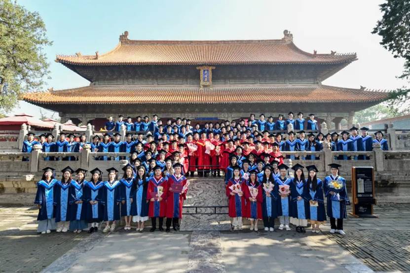 活动最后,全体人员在校歌声中,齐聚丹陛,合影留念。在合影的欢笑声中,典礼落下帷幕。
