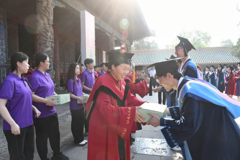 随后两院导师代表分别为考取博士研究生的毕业生赠书。以中华书局《史记》相馈,勉励他们治学不辍,学无止境,勇攀高峰,“立言立功”,“成一家之言”,嘉惠学林,为母校增光。