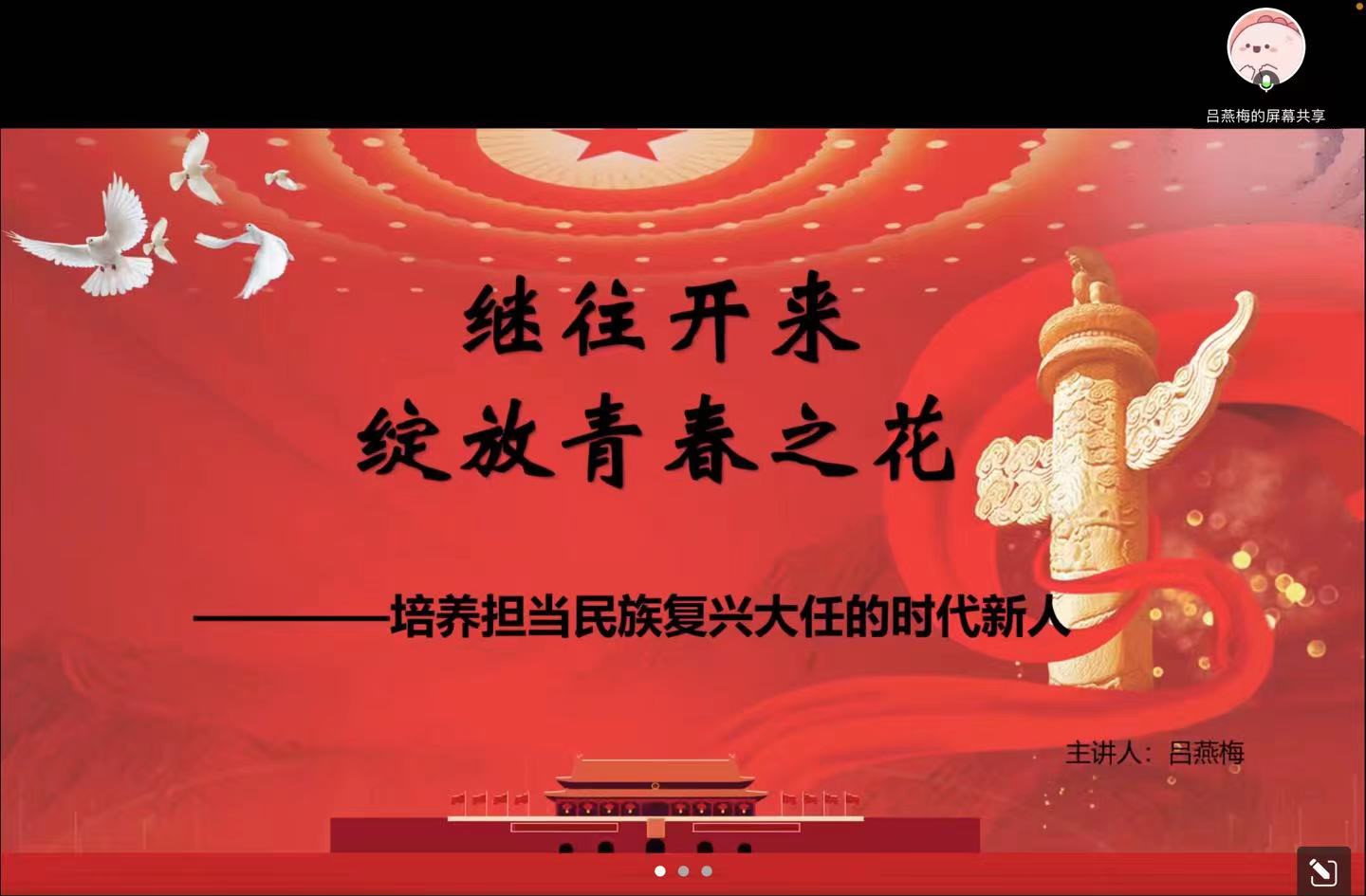 吕燕梅以《继往开来,绽放青春之花——培养担当民族复兴大任的时代新人》为主题,围绕建设社会主义现代化强国,是我们这一代青年的责任使命与荣光;我们要努力成长为担当时代大任,肩负复兴使命的时代新人;新的征程上我们要听党话、跟党走等三部分内容展开宣讲,呼吁当代青年踔厉奋发,笃行不怠,努力成长为担当时代大任,肩负复兴使命的时代新人,造就有理想、敢担当、能吃苦、肯奋斗的新青年。