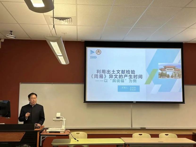 2024年2月16日至18日,第十三届汉字与汉字教育国际研讨会,在美国夏威夷大学举办,来自中国、美国、韩国、日本、越南,以及中国香港、台湾等国家和地区的近70名学者出席,王钧林教授应邀出席,并做了题为“利用出土文献检验《周易》异文的产生时间——以‘舆说辐’为例”的演讲。演讲稿以刘兆轩博士的同题论文为基础精炼修改而成。《周易》文本在长达3000年的流传过程中产生了不少异文,历代学者对此作了认真的考辨。以小畜卦九三爻辞“舆说辐”为例,“辐”为异,“輹”为正,二者完全不同。这条异文产生的时间,根据历代学者研究成果和《周易》版本作综合判断,大致在唐代。然后,再利用出土文献验证,可知“舆说辐”异文产生于唐代的判断是正确的。