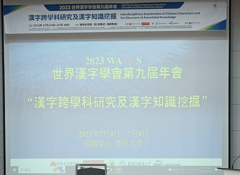 世界汉字学会(WACCS)第九届年会暨国际学术研讨会“汉字跨学科研究及汉字知识挖掘”于2023年7月4至8日在韩国釜山召开。我院东亚易学研究中心刘兆轩博士应邀出席会议并宣读论文。