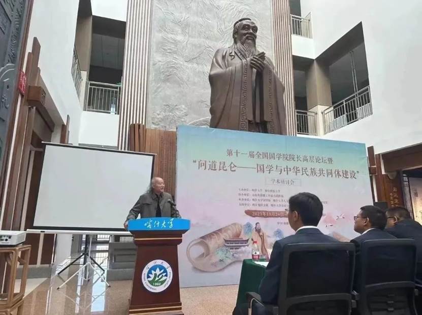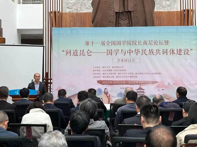为铸牢中华民族共同体意识,推进中华民族共有精神家园建设,10月24日-27日,第十一届全国国学院院长高层论坛暨“问道昆仑——国学与中华民族共同体建设”学术研讨会在喀什大学国学院举行。本次研讨会由山东省援疆工作指挥部指导,喀什大学、曲阜师范大学主办,喀什大学国学院、喀什大学人文学院、曲阜师范大学孔子文化研究院共同承办,喀什地区文联、喀什大学音乐与舞蹈学院协办,来自全国各高校国学院及疆内的专家学者近50人参加了本次研讨会。