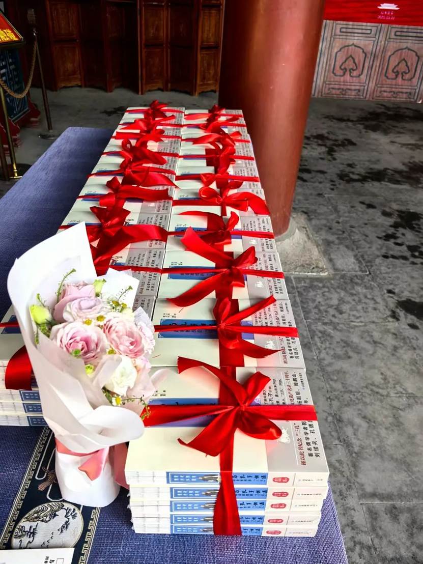 随后,两位作者宋立林与董少伟向曲阜师范大学图书馆、中国教师博物馆教育家藏书馆、孔子研究院儒学文献收藏中心、济宁市文化传承发展中心、曲阜文化建设示范区推进办公室、曲阜市委宣传部、曲阜市政协、曲阜市文物局、曲阜文化两创研究院、邹城现代儒乡建设研究院、曲阜市三孔文化旅游服务有限责任公司、曲阜论语研究会、曲阜市诗楹联学会、曲阜市摄影家学会、曲阜美术家协会、今古谭书店等单位赠书。