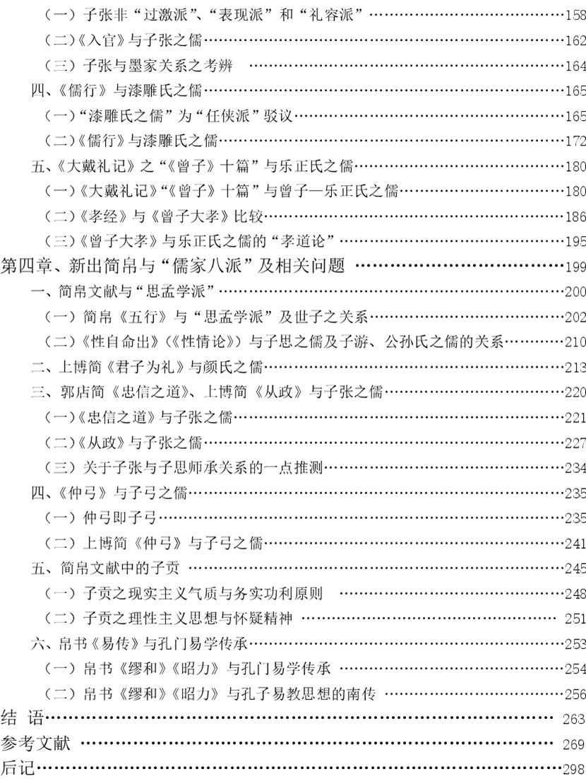 承台湾佛光大学李纪祥师、业师杨朝明先生及挚友王聿槛兄拨冗赐序,鼓励与争鸣,惠我匪浅,铭感五内!此文撰著期间,蒙学界前辈指点教益无数,尤其梁涛老师启示、提携尤多,谨致谢忱!白奚老师为余博士论文答辩主席,多有赐教,受益匪浅!廖名春老师多年来关怀有加,教示良多。黄怀信师、傅永聚师、王洪军师、王钧林师、韩星师、刘彬师、周海生师等多有错爱,惜乎,余才思不敏,诸位老师之意见未能完全领会并改正文中缺憾。同门刘光胜兄提供建议,使余初列之庞大提纲得以缩半,论文得以顺利完成。衍华、海鹰等杨门数十师兄弟,无论身在曲阜,抑或求学工作于异地,切磋论学,关怀备至,其乐融融,温馨无比!恕不一一具名致谢!