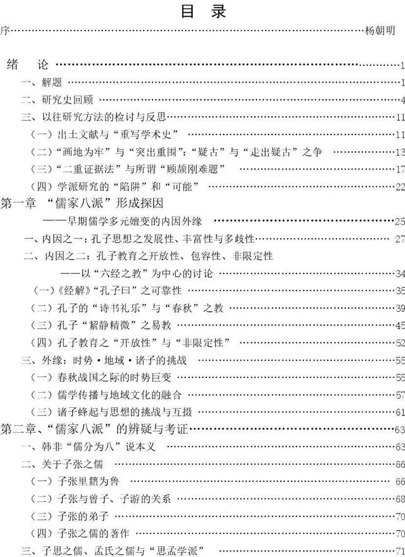 十年间,耳提面命,小子能有初窥学问门径,赖恩师之赐也。攻读硕士时,余所为文以孔子易教为题,于夫子亦有“弥高弥坚”之叹。攻读博士时,顺流而下,研习七十子及其后学,所谓“儒家八派”问题,欲于此纠葛不清之公案,稍加廓清,重写先秦儒学史也。