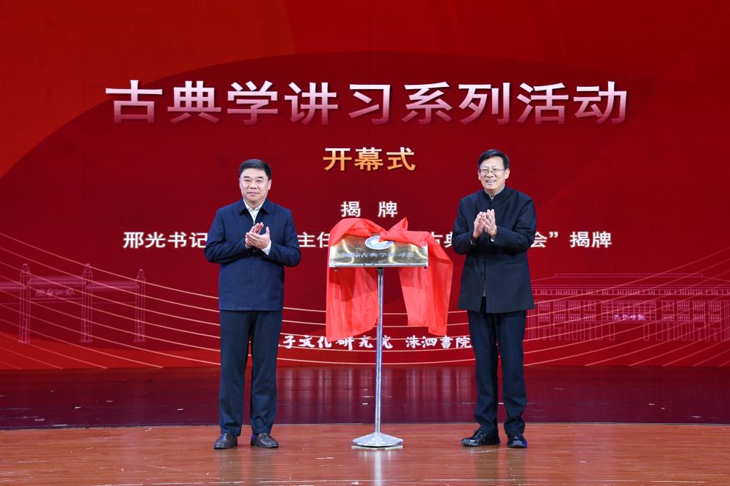 邢光在致辞中对各位嘉宾的到来表示热烈欢迎,并向长期以来关心支持学校事业发展的各界朋友致以最诚挚的感谢。他指出,建校七十年来,曲阜师范大学扎根孔子故里,肩负着传承中华文脉、弘扬优秀传统文化的光荣使命,将“为国弘文”视为治学育人的重要理念,力图在构建中华民族现代文明、提升中华文化影响力的新征程中,展现曲师新作为。我校致力于搭建古典学交流平台,推动古典学研究繁荣进步,孔子文化研究院、洙泗书院在古典学研究领域深耕不辍,形成了蜚声中外的儒学研究“洙泗学派”。今年9月,我校与山东省文化与旅游厅联合主办了首届“古典学讲习营”,在学术界和社会上产生了广泛而深远的影响。本次活动既是对首届“古典学讲习营”的深化,更是为我校七十周年校庆献上的一份厚礼。