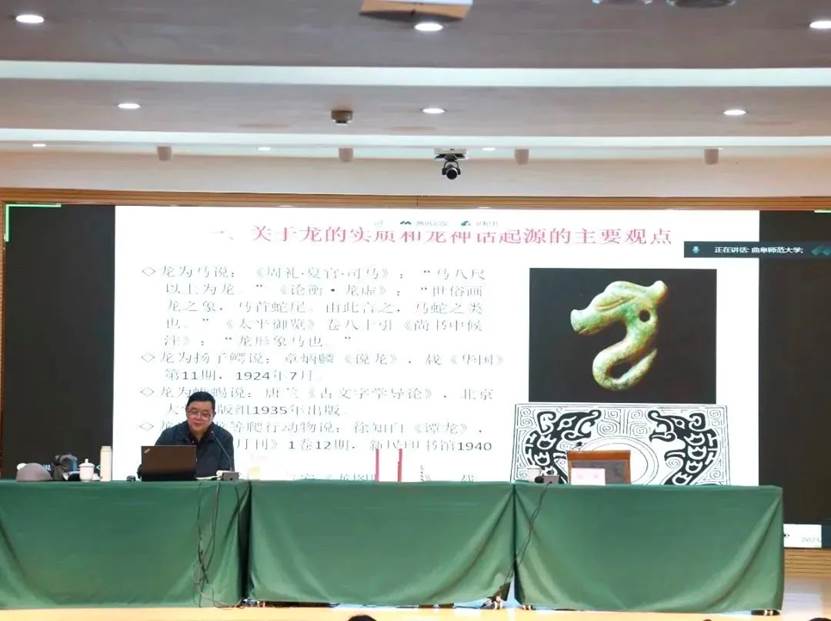 首先是关于龙的实质和龙神话起源的主要观点。古代比较流行的说法是龙为马、蜥蜴、恐龙、蛙等说法。21世纪初对龙的本质判断有五种看法,分别是扬子鳄说、蜥蜴说、祖型多元说、历史形态说、心理结构模式说。随后王小盾教授总结道,21世纪之前学者们对龙的本质判断是不一致的,各有冲突,而近年来学者们对龙的认识不再是单一的形象,而是偏向于综合的形象。王小盾教授点出学术研究需要想象、推测,但要有根据、证据链。